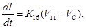 15) Линеаризованная зависимость величины зазора между электродом и подложкой Lот суммарной скорости подачи электрода Vп и скорости сгорания подложки Vс
