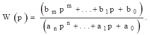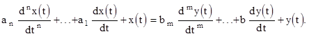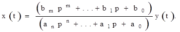 Этот коэффициент W(p) называется передаточной функцией данного дифференциального уравнения. Передаточная функция условно и в то же время наглядно отражает структуру и численные значения коэффициентов дифференциального уравнения, связывающего две переменные - независимую (входную) y(t) и искомую (выходную) x(t):