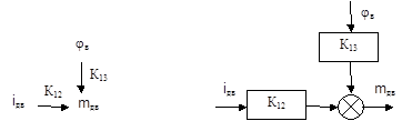 7) mq в =K12 iдв +K13 jв ; W8 (p)=K12 ; W9 (p)=K13 , K12 =K'10 , K13 =K'11 .