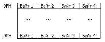 Видеопамять, имеющая общий объем 80 байтов, предназначена для хранения кодов символов, отображаемых на ЖКИ. Видеопамять организована в две строки по 40 символов в каждой. Эта привязка является жесткой и не подлежит изменению. Другими словами, независимо от того, сколько реальных строк будет иметь каждый конкретный ЖКИ-модуль, скажем, 80 х 1 или 20 х 4, адресация видеопамяти всегда производится как к двум строкам по 40 символов.