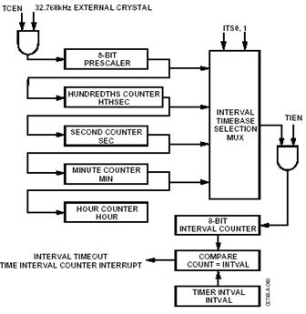 Важной особенностью прибора является наличие счетчика временных интервалов (TIC ), позволяющего отсчитывать временные интервалы большие, чем способны стандартные таймеры – длительностью до 255 часов. Упрощенная схема TIC представлена на рисунке 2.6.