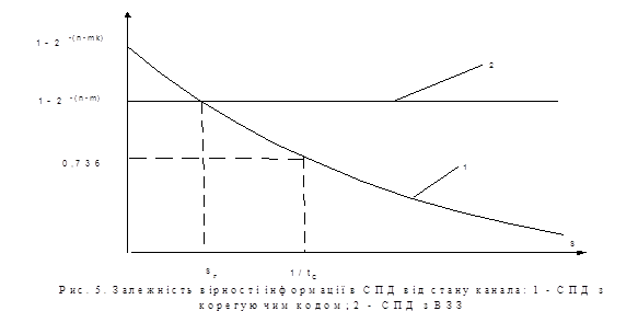 2. Виявлене викривлення виправлене. Очевидно, що як для систем з ВЗЗ, так і для СПД із коригуючим кодом ця імовірність дорівнює одиниці (при дотриманні відзначеного вище умови, що коригуючі можливості коду відповідають характеру порушення цілісності).