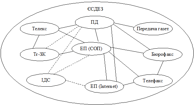 Документальний електрозв’язок забезпечує передачу засобами електрозв’язку текстової і графічної інформації, а також двійкових файлів. Сукупність мереж і служб ДЕЗ різної приналежності на території України утворює систему ДЕЗ України, якою надаються послуги по передачі телеграм (служба ТГ-3К), абонентському телеграфуванню (служба Телекс), передачі факсимільних повідомлень (служби Телефакс і Бюро факс), передачі даних (ПД), електронній пошті (ЕП), забезпечується доступ до інформаційно-довідкових служб (ІДС) і здійснюється передача газет.