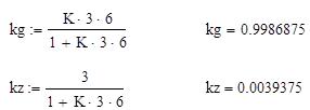 Здесь Kg , Kz – представляют собой суммарные коэффициенты усиления соответственно задающего и возмущающего воздействия и могут быть определены из передаточных функций системы, найденных по задающему и возмущающему воздействиям.