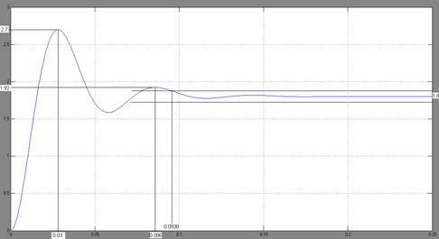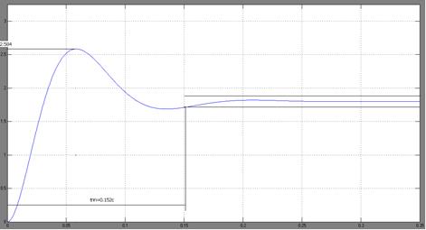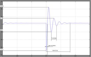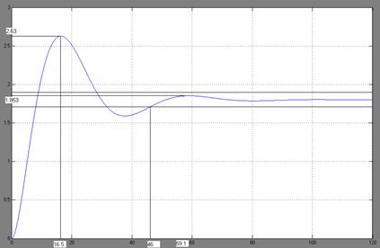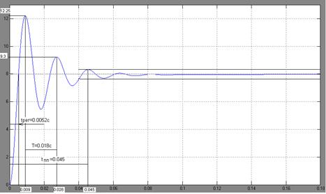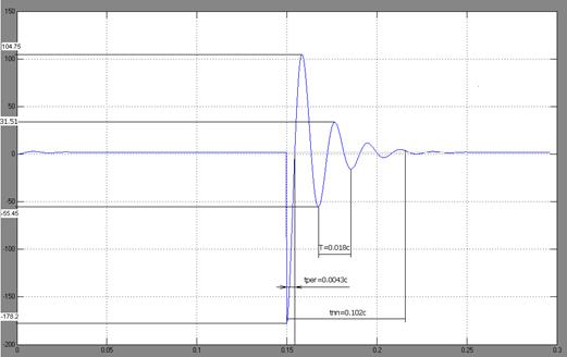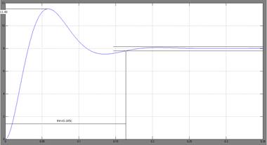 Были смоделированы, в пакете Mathlab, переходные процессы скорректированной САУ и определены время переходных процессов и величина перерегулирования.