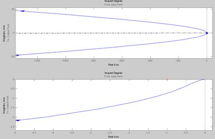 По критерию Гурвица, после составления матрицы третьего порядка, было определено, что САУ устойчива. Проверку правильности решения матрицы третьего порядка провели на основе моделирования в пакете Mathlab критерия Найквиста. Был проведен синтез корректирующего устройства, обеспечивающего устойчивость исходной САУ и ее настройка на симетричный оптимум.