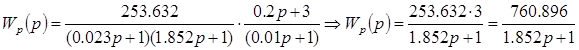 Так как процесс определяет инерционная составляющая равна Ти2 = 1.852, то можно пренебречь форсажом 0.2 и малыми инерционными составляющими Ти1 = 0.023, Ти3 = 0.01. т.к. они лежат справа от рабочей полосы частот, получим ОУ вида