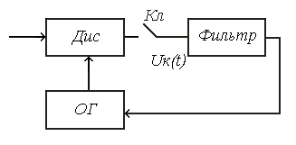 Рис.2. Функциональная схема следящей системы с прерывистым входным сигналом: Дис – дискриминатор; ОГ – опорный генератор.