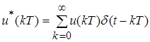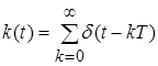 Чтобы получить структурную схему дискретной системы, вместо ключа вводят импульсный элемент (рис.7), коэффициент передачи которого является последовательностью дельта-функций
