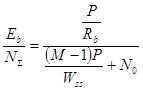 Если все станции передают информацию с одинаковой скоростью Rb =1/Tb ; Тb — длительность информационого бита, а энергия, приходящаяся на бит передаваемой информации Eb =P/Rb , то отношение сигнал/суммарная помеха в полосе ШПС Wss равно