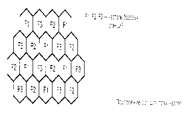 Каждая из ячеек обслуживается своим передатчиком с невысокой выходной мощностью и ограниченным числом каналов связи. Это позволяет без помех использовать повторно частоты каналов этого передатчика в другой, удаленной на значительное расстояние, ячейке. Теоретически такие передатчики можно использовать и в соседних ячейках. Но на практике зоны обслуживания сот могут перекрываться под действием различных факторов, например, вследствие изменения условий распространения радиоволн. Поэтому в соседних ячейках используются различные частоты. Пример построения сот при использовании трех частот F1 - F3 представлен на рис1.