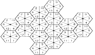 При реализации первого способа вся обслуживаемая территория разделяется на одинаковые по форме зоны и с помощью закона статистической радиофизики определяются их допустимые размеры и расстояния до других зон, в пределах которых выполняются условия допустимого взаимного влияния. Для оптимального, т. е. без перекрытия или пропусков участков, разделения территории на соты могут быть использованы только три геометрические фигуры: треугольник, квадрат и шестиугольник. Наиболее подходящей фигурой является шестиугольник, так как, если антенну с круговой диаграммой направленности устанавливать в его центре, то будет обеспечен доступ почти ко всем участкам соты.
