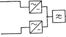 На крупных МТС и УАК, т. е. в условиях большого потребления энергии, при большой рассредоточенности потребителей находит ограниченное применение базаккумуляторная двулучевая система электропитания (рисунок 3).