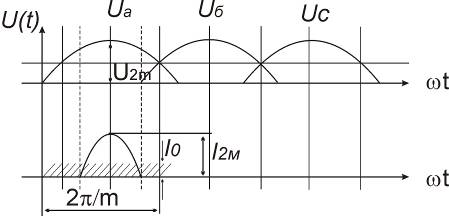 Напряжение на нагрузке имеет форму огибающей ЭДС, действующей в фазе. Коэффициент пульсации по первой огибающей: