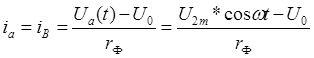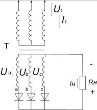 Представляет интерес взаимосвязи тока и напряжения, на выходе схемы (на нагрузке) и теми токами и напряжениями, которые действуют в схеме выпрямителя.