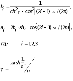 Определим значения коэффициентов ai , bi полинома, аппроксимирующего передаточную функцию фильтра и добротности полюсов звеньев фильтра: