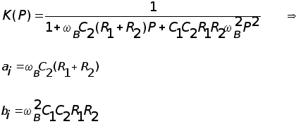Отсюда при извесных ai , bi в рассчитываются элементы схемы: