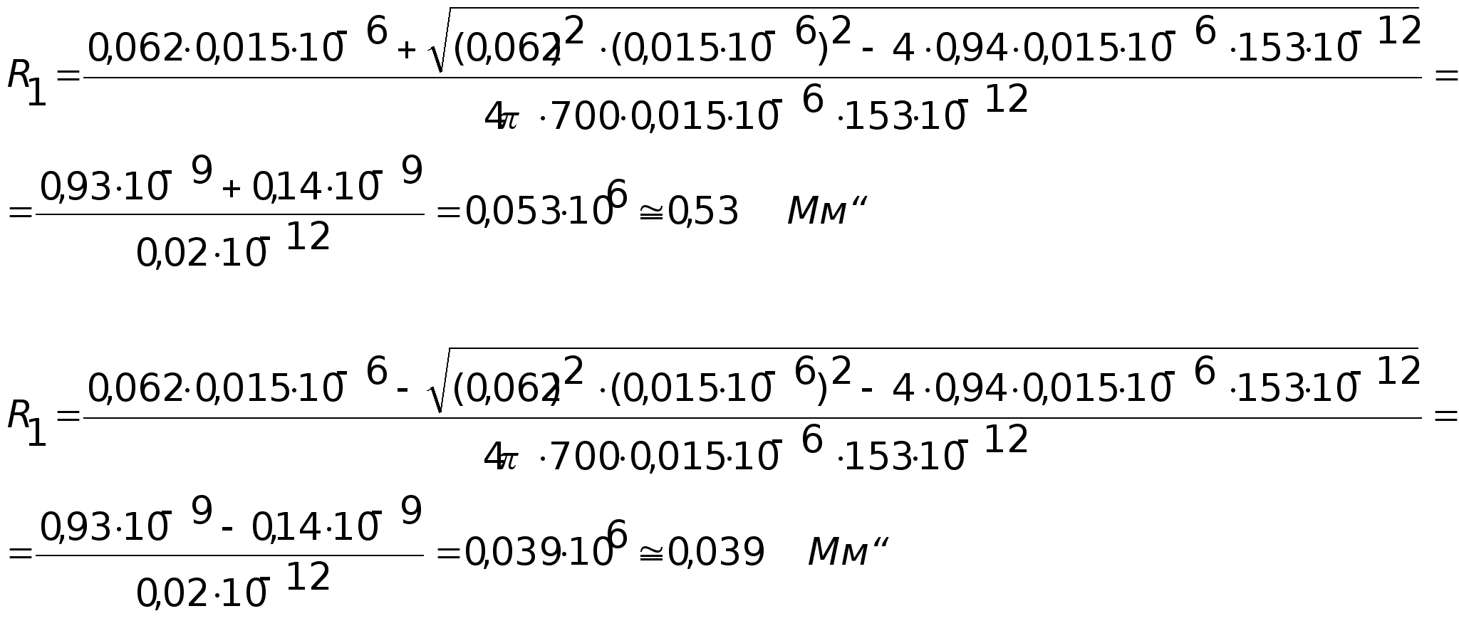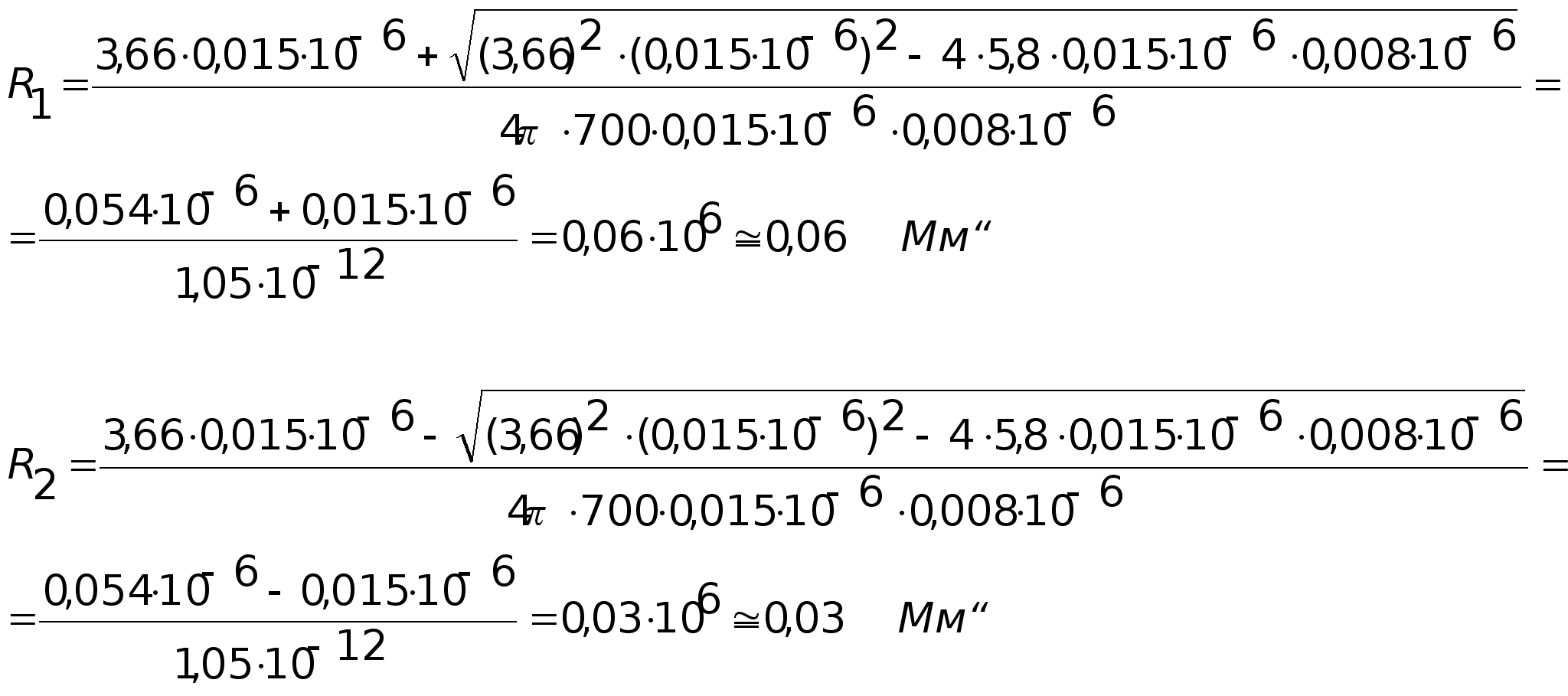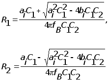 Рассчитываем величины R1 и R2 по соотношениям: