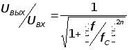 где n - определяет порядок фильтра (число полюсов). Увеличение числа полюсов дает возможность увеличить крутизну спада от полосы пропускания к полосе подавления.