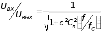 В большинстве применений самым существенным обстоятельством является то, что неравномерновть характеристики в полосе пропускания недолжна превыщать некоторой величины, скажем 1 дБ. Фильтр Чебышева отвечает этому требованию, при этом допускается некоторая неравномерность харкктеристики по всей полосе пропускания, но при этом сильно увеличивается острота её излома. Для фильтра Чебышева задают число полюсов и неравномерность в полосе пропускания. Допуская увеличение неравномерности в полосе пропускания., получаем более острый излом. Амплитудная характеристика этого фильтра описывается уравнением: