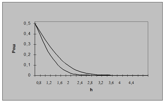 Сравнивая полученные результаты зависимостей Pош (h) для ЧМ и ФМ мы видим ,что фазовая модуляция является более помехоустойчивой, чем частотная.