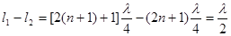 Отсчеты l1 и l2 соответствуют l/4 и 3l/4, поэтому их разность равна половине длины волны. В общем случае