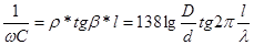 где D — внутренний диаметр внешнего проводника; d— внешний диаметр внутреннего проводника: ρ — волновое сопротивление линии.