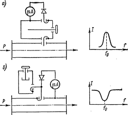 Рис. 8-9. Проходной (а) и поглощающий (б) частотомеры