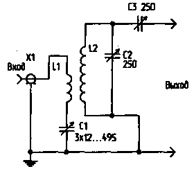 Настраивают ЦС, изображенную на рис.2, просто. Конденсатор С1 ставят в максимальное положение, С2 и СЗ - в минимальное, затем с помощью С2 настраивают контур в резонанс, и потом, увеличивая связь с антенной с помощью С3, добиваются максимальной отдачи мощности в антенну, при этом все время подстраивая С2 и, по возможности, С1. Следует стремиться к тому, чтобы после настройки ЦС СЗ имел максимальную емкость.