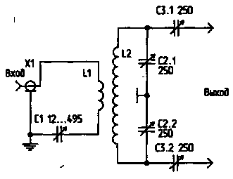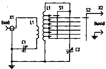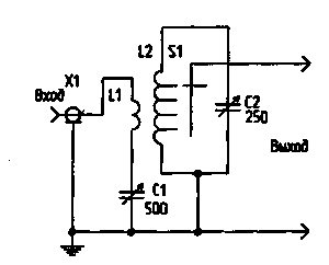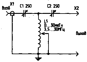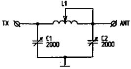 В реальных условиях, когда выход передатчика составляет 50...75 Ом, и согласование необходимо производить в широком диапазоне сопротивлений нагрузки, параметры П-контура меняются в десятки раз. Например на 3,5 МГц при Rвх=Rн=75 Ом индуктивность L1 составляет примерно 2 мкГн, a C1, C2 - по 2000 пф, а при Rвх=75 Ом и RH в несколько килоом индуктивность L1 составляет примерно 20 мкГн, емкость Cl - около 2000 пФ, а C2 - десятки пикофарад. Такие большие разбросы в величинах используемых элементов и ограничивают использование П-контура в качестве ЦС. Желательно использовать переменную индуктивность. Конденсатор Cl может иметь небольшой зазор, а C2 должен иметь зазор не менее 2 мм на каждые 200 Вт мощности.