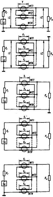 В формулах n - коэффициент трансформации, к - порядковый номер линии, считая сверху, Uн - напряжение на нагрузке.
