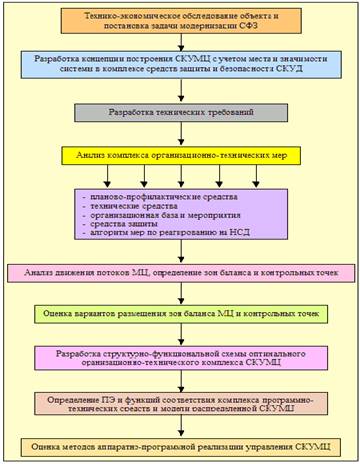Интеграция СКУМЦ в системы охраны и физической защиты ПКО требует реализации мероприятий, аналогичных мероприятиям инженерного проектирования и оборудования объектов средствами СКУД. Упрощенная схема организационно-технических мероприятий, касающихся внедрения СКУМЦ, представленная на рис.3, должна предусматривать: