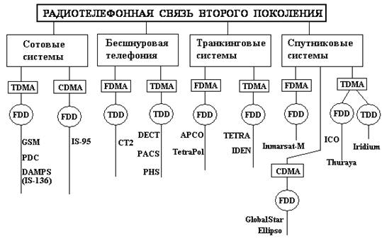 Рис.1. Классификация систем подвижной связи второго поколения