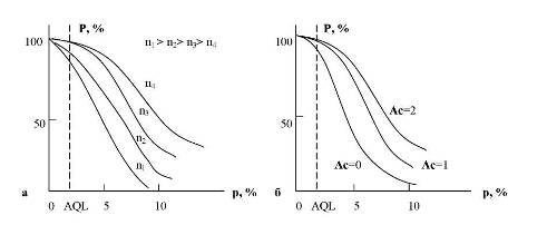 Уровни контроля отличаются друг от друга объемом выборки n и требованиями к контролю, что выражается крутизной оперативной характеристики.