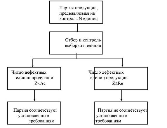 Одноступенчатый план выборочного контроля характеризуется тем, что решение относительно приема партии продукции принимают по результатам контроля только одной выборки. Схема одноступенчатого плана выборочного контроля приведена на рисунке 4