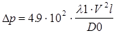 С учетом уменьшения сечения трубы в местах стыков, пайки и.т.д. Dp увеличено в 1,5 раза.