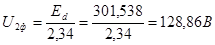 где Ed = 301,538 B - выпрямленное напряжение холостого хода выпрямителя; Uпит.лин. = 380 В - напряжение питания.