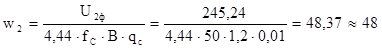 6.7 Число витков вторичной (вентильной) обмотки трансформатора: