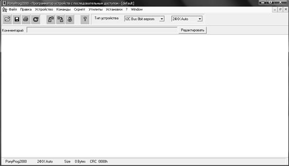 Головна панель програми містить лише одне головне вікно (рис.9), де в свою чергу можуть бути відкриті одне або декілька вікон з різним варіантом прошивки. У верхній частині головної панелі традиційно розташовується меню та дві панелі інструментів.