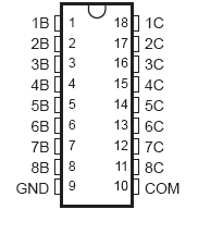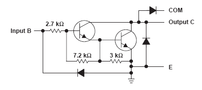 Мікросхема ULN2803А (рис. 21) – високовольтний, масив n-p-n транзисторів Дарлингтона. Прилад складається з 8 пар транзисторів n-p-n структури, який має високовольтні виводи з фіксуючими діодами загального катоду, для того, щоб комутувати індуктивні навантаження. Оцінка току колектора пари Дарлингтона 500 мА. Пари Дарлингтона (рис. 22) можуть бути підключені паралельно для більшого допустимого навантаження по точці. Зазвичай до них підключають контролер реле, контролер молотка, контролер лампи, вирівнюючий контролер. У схемі ULN2803А є базовий резистор прогресії для кожної пари Дарлингтона, безпосередньо для операцій з ТТЛ – схемами або 5 В компланарним МОП – транзистор.