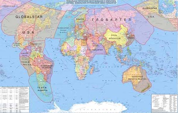 За допомогою низькоорбітальних супутників Глобалстар забезпечує зв'язком абонентів, що виїжджають за межі дії стільникових систем і як і раніше бажаючих користатися звичними послугами. Нижче (рис.1) показана зона обслуговування супутникової мережі Глобалстар.