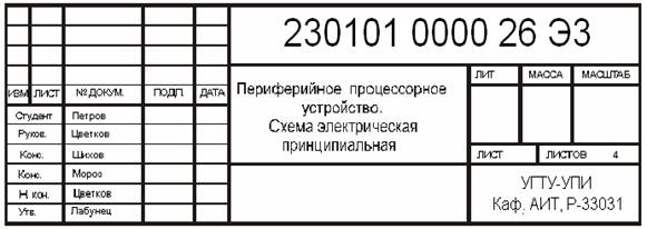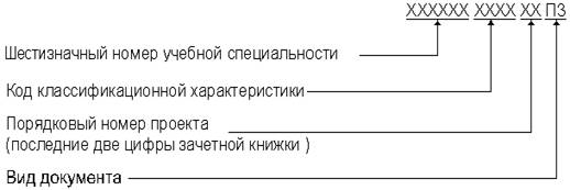 Пояснительной записке присваивается шифр, который записывается на титульном листе под надписью “Пояснительная записка”. Вид шифра показан ниже. Учебная специальность имеет номер 230101. Код классификационной характеристики присваивают по классификатору ЕСКД или отраслевым классификаторам. Если тема не имеет кода, то на месте кода в обозначении записывается четыре нуля.