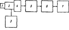 Блок-схема сцинтилляционного спектрометра. 1 - сцинтиллятор, 2 - ФЭУ, з - источник высокого напряжения, 4 - катодный повторитель, д - линейный усилитель, 6 - амплитудный анализатор импульсов, 7 - регистрирующий прибор.