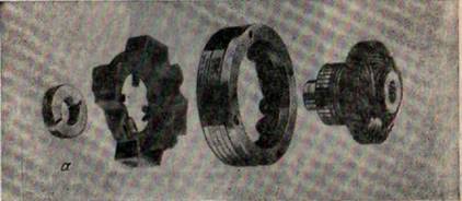 Типы конструкций. Чтобы избежать использования дополнительного источника питания обмотки возбуждения, индуктор выполняют на постоянных магнитах. Укажем обычно используемые материалы и порядок величин их остаточной индукции Вг и коэрцитивного поля Не. Твердые ферриты из смеси металлических оксидов: Вг — =0,2-5-0,4 Тл; Яс = ЮО-г-250 кА/м; альнико (сплав железо — никель — кобальт — алюминий — медь): £,=0,8-М,3 Тл; с =504-80 кА/м; тиконал (сплав типа альнико с добавкой титана): Br =0,7-f--т-0,8 Тл; #с=120-г160 кА/м; кобальт—самарий (редкоземельный элемент): Вг =0,8-г-4-1,0 Тл; Яс=600н-700 кА/м. В противоположность альнико и тиконалу магниты из ферритов или редкоземельных металлов не размагничиваются при демонтаже; зато альнико и тиконал малочувствительны к температурам. Классификация в порядке возрастания цены следующая: феррит, альнико, тиконал, редкие земли.