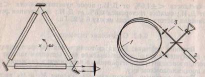 В случае очень медленного вращения, например, менее одного градуса в час, описанные выше методы становятся непригодными, и в этом случае измерение скорости может быть j эффективно осуществлено с помощью лазерного гигрометра.