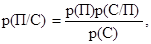 Из (1) следует, что апостериорная плотность вероятностей причины р(П/С) зависит от априорной плотности вероятностей причины р(П) и условной плотности вероятностей следствий р(С/П). плотность р(С/П) является функцией П, ее называют функцией правдоподобия.
