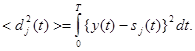 , максимизирующего величину(4) при наблюдении на входе приемника некоторой реализации y(t), эквивалентно минимизации показателя экспоненты. Следовательно, оптимальный приемник должен выносить решение о приеме того сигнала