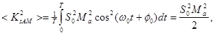 В (8) учтено, что соs2а = 0,5(1+соs2а) и интеграл распадается на две составляющих, одна из которых (с частотой 2w0) близка к нулю и отброшена.