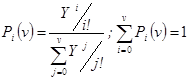 В распределении Пуассона привести шесть - восемь составляющих, включая значения вероятности для i=[Y] (целая часть числа Y); Y = a*v