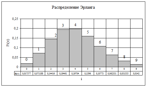 б) Распределение Эрланга используется при N>>vи имеет вид: